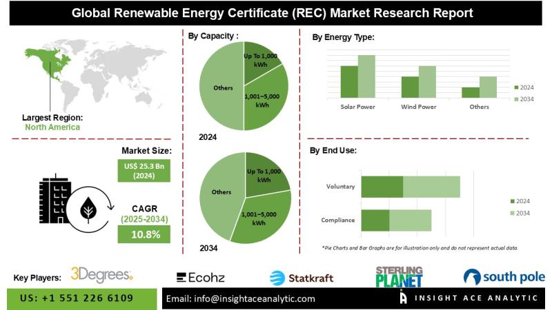 InsightAce Analytic Pvt. Ltd. announces the release of a market assessment report on the " Renewable Energy Certificate (REC) Market- (By Capacity (Up to 1,000 KWH, 1,001-5,000 KWH, Above 5,000 KWH), By Energy Type (Solar Power, Wind Power, Hydropower, Biomass, Others), By End-use (Compliance, Voluntary)), Trends, Industry Competition Analysis, Revenue and Forecast To 2034."