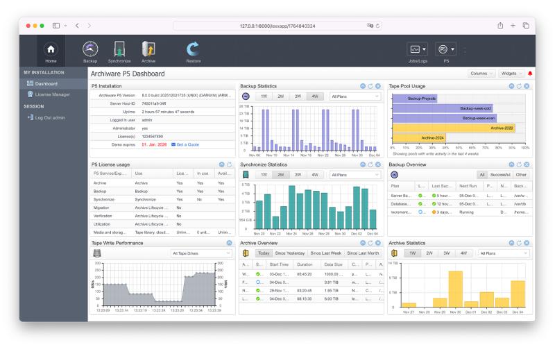Archiware GmbH, expert in data management software, announces the release of version 8.0 of its P5 Data Management Platform. The update introduces a range of powerful new features designed to increase operational control and efficiency, including:• P5 Synchronize: Bidirectional cloud sync plans with AWS, Azure, Google Cloud, Wasabi, and other S3-compatible storage.