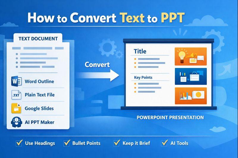 Turning raw text into a clean, structured presentation is something I do often when I need to transform notes, articles, reports, or documentation into slides quickly. In this guide, I'll show you practical, working methods I personally use to convert text into a PowerPoint presentation with minimal effort and maximum structure.You can do this using Microsoft Word, PowerPoint, Google Slides, and AI tools, depending on what your source text looks like.