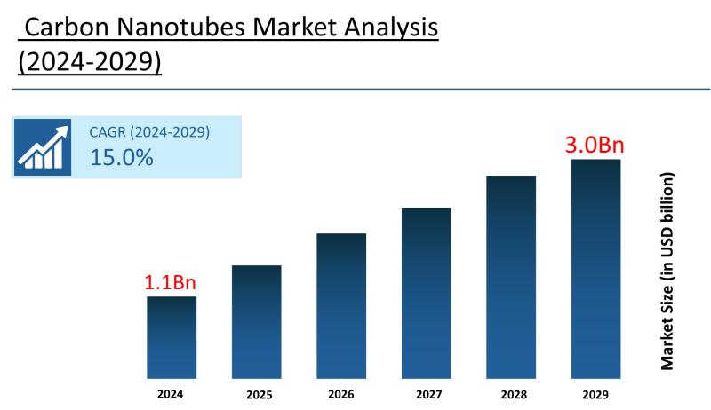 The Carbon Nanotubes Market consists of nanoscale cylindrical carbon allotropes with exceptional mechanical, electrical, and thermal properties used across diversified industrial applications. The market was valued at USD 1.1 billion in 2024 and is projected to reach USD 3.0 billion by 2029, growing at a CAGR of 15.0% during the 2024-2029 forecast period. The principal growth driver is rapid expansion of applications in electronics and semiconductor sectors, because carbon nanotubes'…