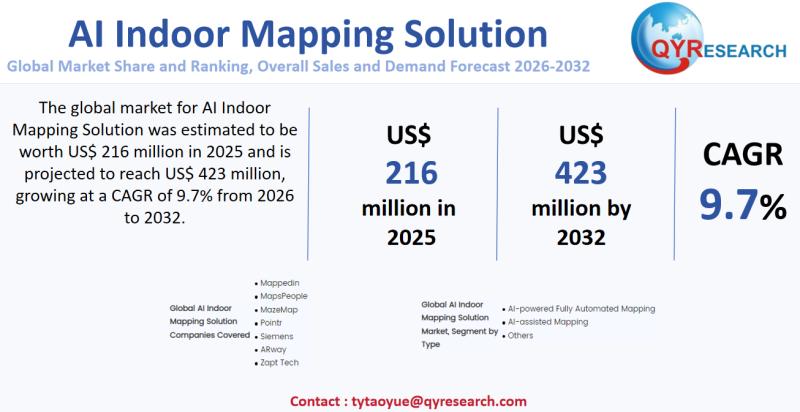 Unlock the Future of the AI Indoor Mapping Solution Market: Comprehensive Global Market Report 2026-2032Global leading market research publisher QYResearch published the release of its latest report, "AI Indoor Mapping Solution - Global Market Share, Ranking, Sales, and Demand Forecast 2026-2032". This in-depth report provides a complete analysis of the global AI Indoor Mapping Solution market, offering critical insights into market size, share, demand, industry development status, and future forecasts. Whether you're a stakeholder, investor, or industry player, this report equips you with the data and strategies needed to stay ahead in a rapidly evolving market.