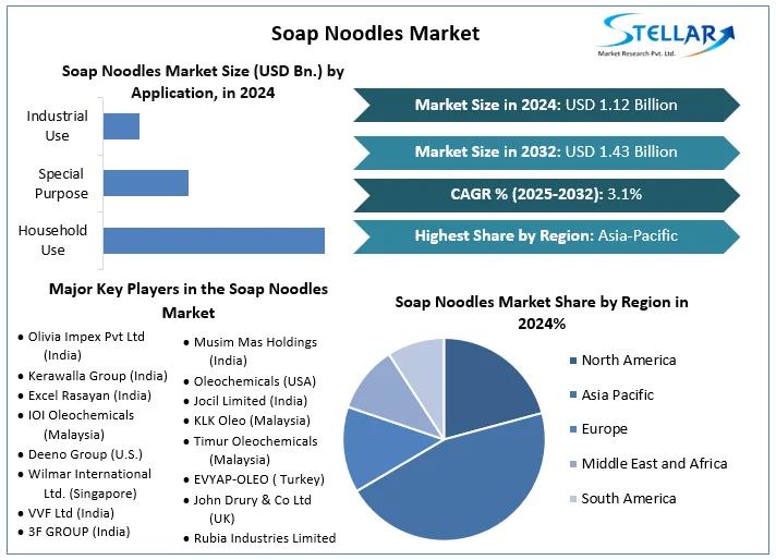 Soap Noodles Market was valued at USD 1.12 billion in 2024. Global Soap Noodles Market size is estimated to grow at a CAGR of 3.1 % over the forecast period.