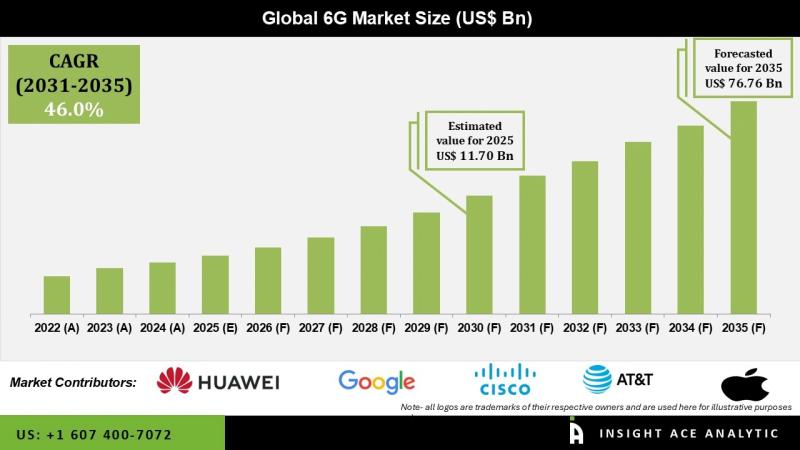 InsightAce Analytic Pvt. Ltd. announces the release of a market assessment report on the "Global 6G Market Size, Share & Trends Analysis Report By Devices (Mobile Devices, IoT and Edge-Computing Devices, Networking Devices), Communication Infrastructure (Wireless And Fixed) And End Users (Consumer Applications And Industrial And Enterprise)- Market Outlook And Industry Analysis 2035"