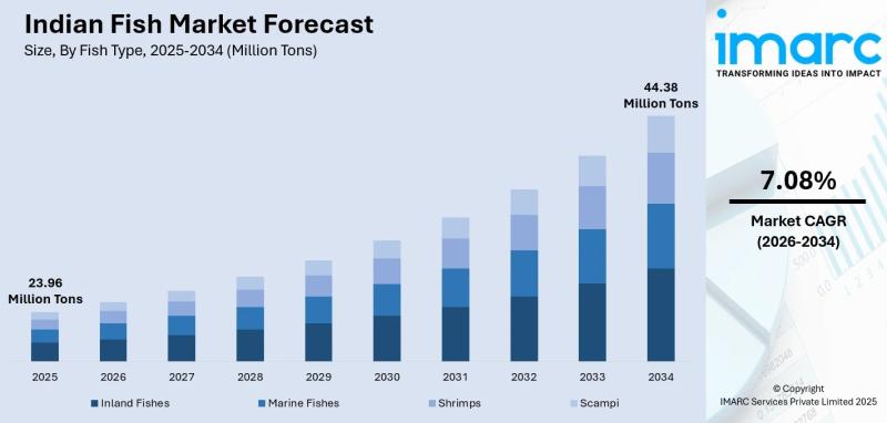 According to IMARC Group's report titled "Indian Fish Market Size, Share, Trends and Forecast by Fish Type, Product Type, Distribution Channel, Sector, and State, 2026-2034" the report offers a comprehensive analysis of the industry, including market share, growth, trends, and regional insights.