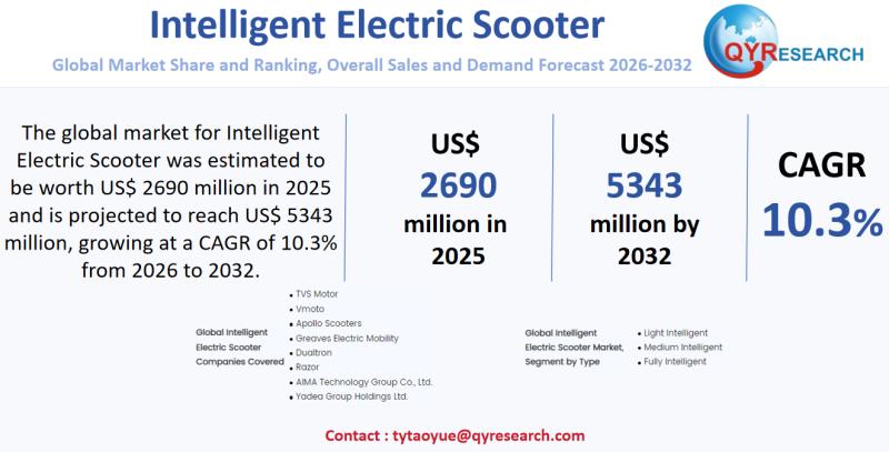 Global leading market research publisher QYResearch published the release of its latest report, "Intelligent Electric Scooter - Global Market Share, Ranking, Sales, and Demand Forecast 2026-2032". This in-depth report provides a complete analysis of the global Intelligent Electric Scooter market, offering critical insights into market size, share, demand, industry development status, and future forecasts. Whether you're a…
