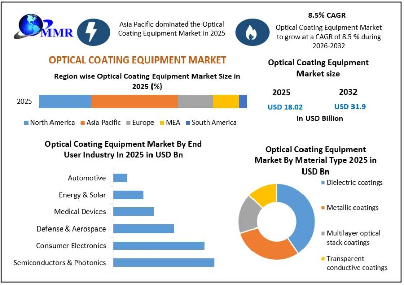 The global Optical Coating Equipment Market is witnessing robust growth, driven by rapid advancements in photonics, electronics, renewable energy, and precision manufacturing technologies. According to the latest industry analysis, the market was valued at USD 18.02 billion in 2025 and is projected to expand at a compound annual growth rate (CAGR) of 8.5% from 2026 to 2032, reaching nearly USD 31.9 billion by 2032.