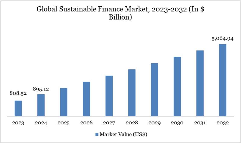 Global Sustainable Finance Market reached US$ 895.12 billion in 2024 and is expected to reach US$ 5,064.94 billion by 2032, growing with a CAGR of 24.19% during the forecast period 2025-2032.