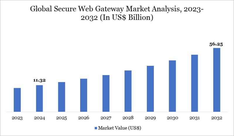 Global Secure Web Gateway Market size reached US$ 11.32 billion in 2024 and is expected to reach US$ 56.25 billion by 2032, growing with a CAGR of 22.19% during the forecast period 2025-2032.The Secure Web Gateway Market is growing due to rising cyber threats, remote work adoption, strict data protection regulations, and increasing demand for cloud-based security solutions across enterprises worldwide.