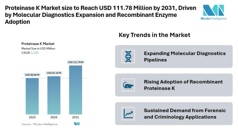 Mordor Intelligence has published a new report on the proteinase k market, offering a comprehensive analysis of trends, growth drivers, and future projections.