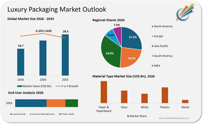 The luxury packaging market is currently positioned as a critical enabler for premium brands across sectors such as cosmetics, fashion, spirits, and confectionery. As of 2026, the market stands at USD 14.3 Billion, reflecting its integral role in brand storytelling and consumer experience enhancement. The sector's growth trajectory is underpinned by rising consumer expectations for exclusivity, personalization, and sustainability, prompting brands to invest in advanced materials and design innovation.