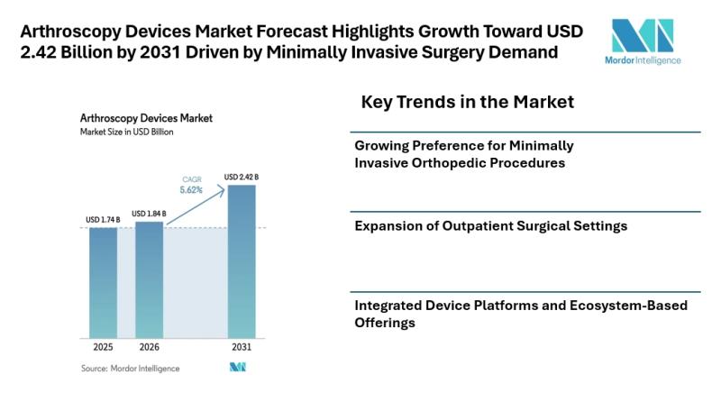 According to Mordor Intelligence, the arthroscopy devices market size [https://www.mordorintelligence.com/industry-reports/global-arthroscopy-devices-market-industry?utm_source=abnewswire] is projected to grow from USD 1.74 billion in 2025 to USD 1.84 billion in 2026, and the arthroscopy devices market forecast suggests the sector may reach USD 2.42 billion by 2031, reflecting steady expansion…