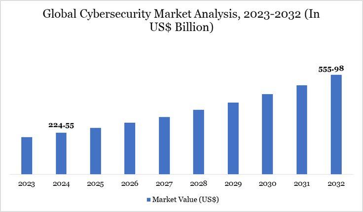 The Cybersecurity Market reached US$ 224.55 billion in 2024 and is expected to reach US$ 555.98 billion by 2032, growing at a CAGR of 12% during the forecast period 2025-2032.