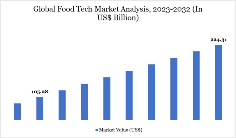 Global Food Tech Market size reached US$ 105.28 billion in 2024 and is expected to reach US$ 224.31 billion by 2032, growing with a CAGR of 9.9% during the forecast period 2025-2032.