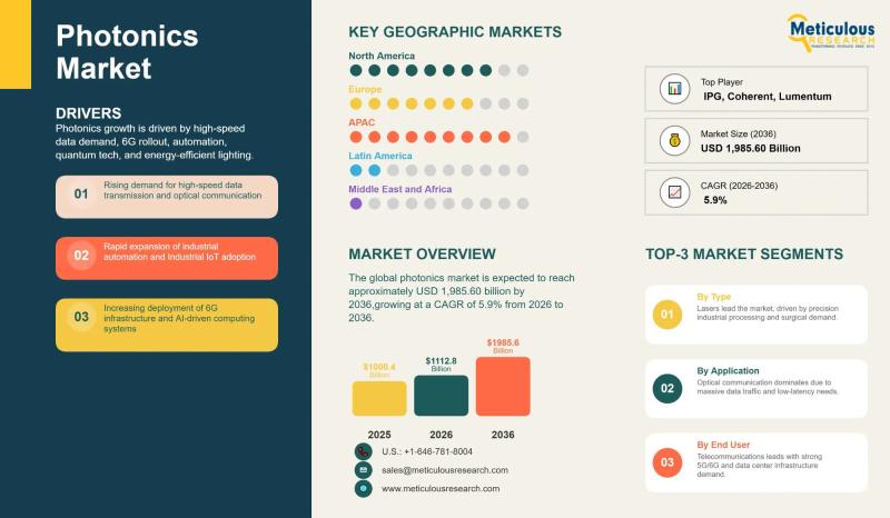 Global Photonics Market to Reach USD 1,985.60 Billion by 2036 at 5.9% CAGR