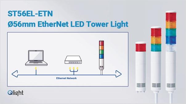 QLIGHT ST56EL-ETN is a Ø56mm EtherNet-enabled LED tower light designed for smart factory and industrial automation environments. As an advanced IoT signaling device, it enables remote monitoring and control over a Local Area Network (LAN), allowing real-time visual status indication through PC-based applications or web browsers.Product Features