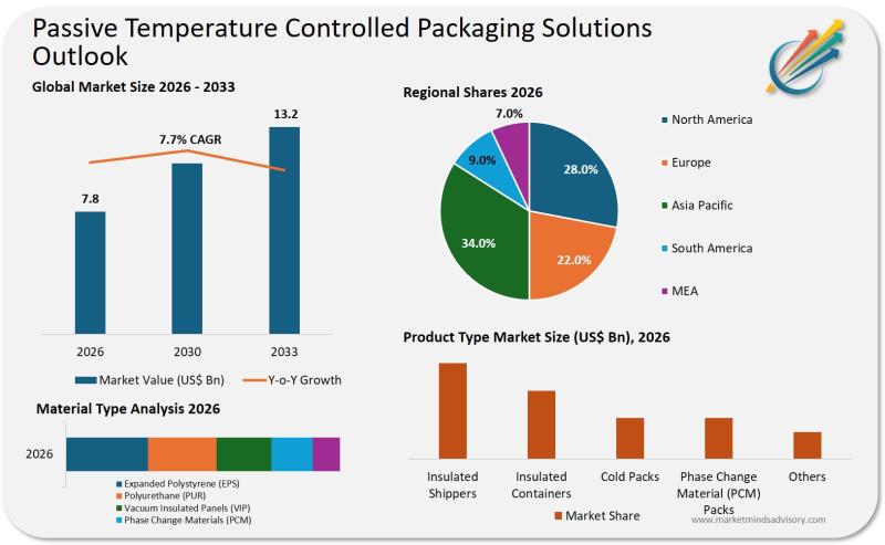 The passive temperature controlled packaging solutions market is positioned as a critical enabler for industries reliant on the safe transport of temperature-sensitive goods, particularly in pharmaceuticals, biotechnology, and perishable food sectors. As of 2026, the market stands at USD 7.8 billion, supported by robust demand for reliable thermal protection during transit. The sector is experiencing a notable shift, driven by increasingly complex global supply…