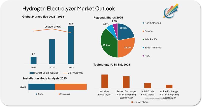 The global hydrogen electrolyzer market is undergoing accelerated transformation, with its value projected to rise from USD 2.1 Billion in 2026 to USD 8.8 Billion by 2033. This growth trajectory is underpinned by intensifying commitments to decarbonization across industrial, mobility, and energy sectors. Electrolyzer systems, particularly those based on proton exchange membrane (PEM) and alkaline technologies, are increasingly recognized as pivotal enablers of green hydrogen production, supporting…
