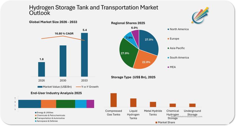 The hydrogen storage tank and transportation market is positioned at a pivotal juncture, with a current valuation of USD 1.2 billion in 2026 and projected to expand to USD 4.7 billion by 2033, according to Market Minds Advisory. This growth trajectory is underpinned by the accelerating adoption of hydrogen as a clean energy vector, particularly in sectors such as mobility, industrial processing, and grid-scale energy storage. The market is witnessing…