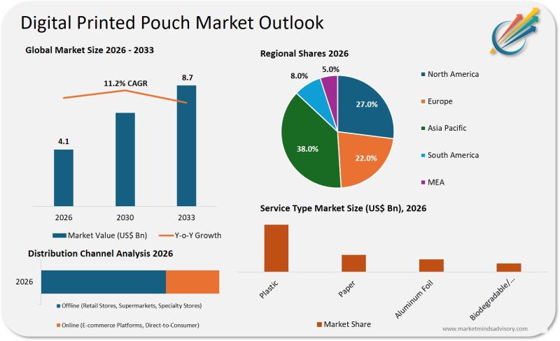 Digital Printed Pouch Market to Reach USD 8.7 Billion by 2033, Exhibiting 11.2% …
