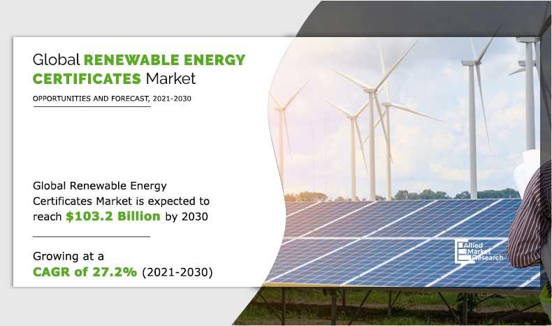According to a new report published by Allied Market Research, the global renewable energy certificate market was valued at $9.3 billion in 2020 and is projected to reach $103.2 billion by 2030, growing at a remarkable CAGR of 27.2% from 2021 to 2030. The rapid expansion of renewable power generation, stricter environmental regulations, and increasing corporate sustainability commitments are key factors driving the renewable energy certificate market worldwide. 🌍⚡