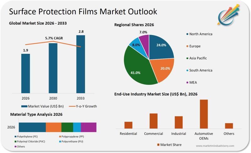 Surface Protection Films Market Reach USD 7.9 Billion by 2033, Exhibiting 6.4% C …