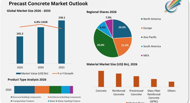 The precast concrete market is positioned at a pivotal juncture within the global construction sector, valued at USD 141.6 billion in 2026 and projected to reach USD 214.0 billion by 2033, according to Market Minds Advisory. This growth trajectory is underpinned by the increasing adoption of offsite construction techniques, which enable accelerated project timelines, enhanced quality control, and reduced labor dependency. Precast concrete's versatility in structural and…