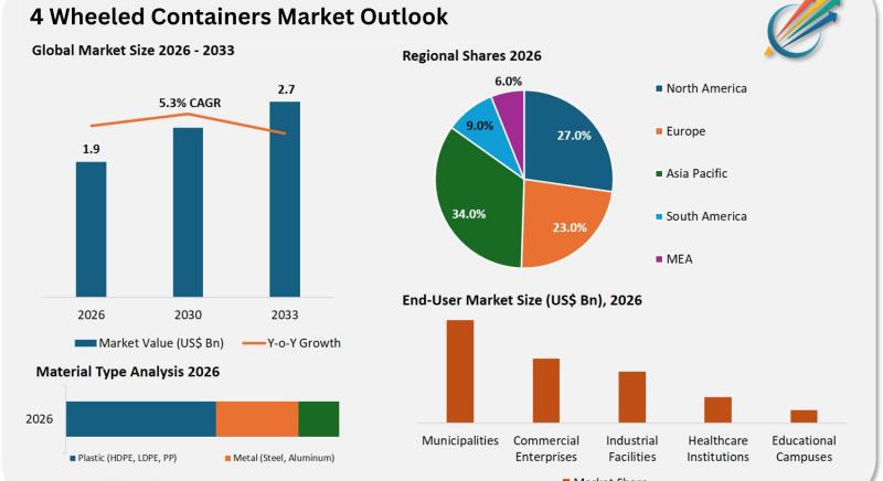 4-Wheeled Containers Market to Reach USD 2.67 Billion by 2033, Expanding at 5.3% …