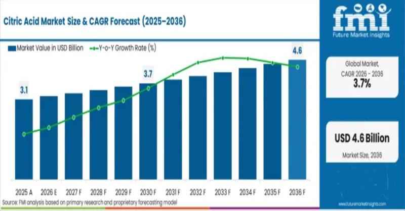 Citric Acid Market to Reach USD 4,741.3 Million by 2036, Expanding at 3.7% CAGR: …