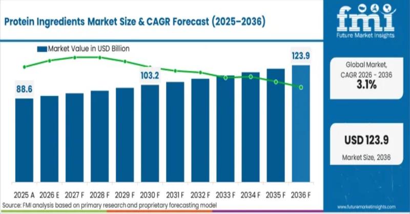 The global Protein Ingredients Market is entering a structural transformation phase, driven less by volume expansion and more by specification intensity. According to the latest analysis by Future Market Insights (FMI), the market surpassed USD 88.6 billion in 2025 and is projected to grow to USD 91.3 billion in 2026. Over the next decade, revenues are forecast to reach USD 123.9 billion by 2036, expanding at a…