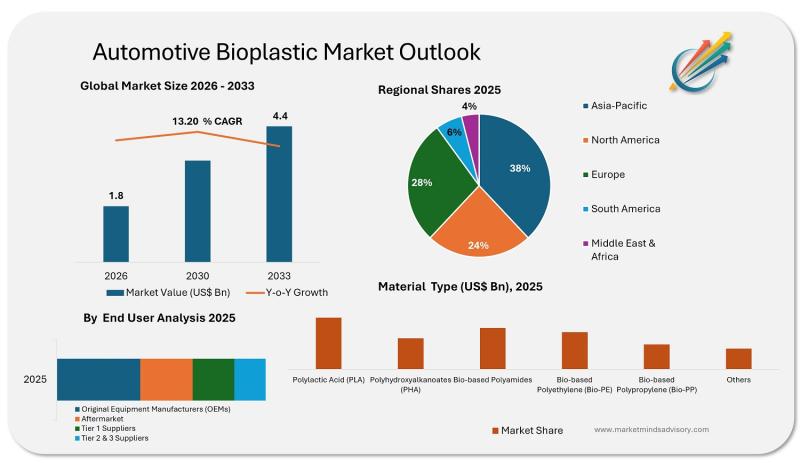 Automotive Bioplastic Market to Reach USD 4.39 Billion by 2033, Driven by 13.2% …