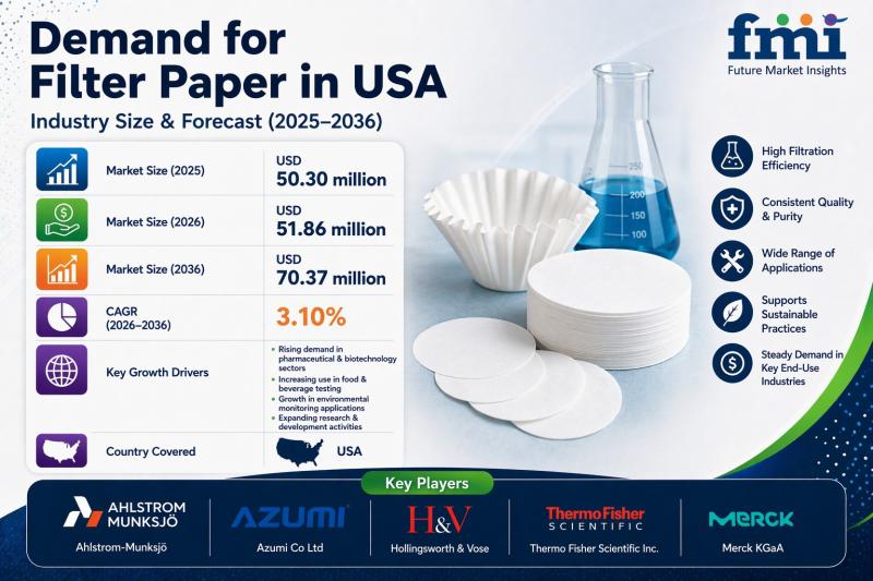 Demand for Filter Paper in USA to Reach USD 70.37 Million by 2036 | Driven by Sp …