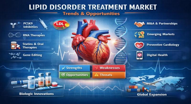 The lipid disorder treatment market represents a critical segment within the global cardiovascular therapeutics landscape. Lipid disorders-including hypercholesterolemia, hypertriglyceridemia, and mixed dyslipidemia-are major risk factors for atherosclerotic cardiovascular disease (ASCVD), stroke, and metabolic syndrome. As cardiovascular conditions remain a leading cause of mortality worldwide, pharmaceutical innovation in lipid-lowering therapies continues to shape competitive dynamics.