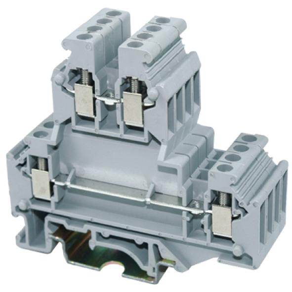 Engineering a double-layer terminal block requires a careful balance of conductivity, mechanical strength, and electrical isolation. The double-deck structure essentially doubles the number of connection points within a standard 5mm or 6mm width, which creates potential challenges for heat dissipation and dielectric strength. Professional-grade products, such as the JUT1-2.5/2L series, address these challenges through superior structural design. This series utilizes high-strength screw-clamp technology to ensure that both the upper and lower wiring levels maintain consistent contact pressure over thousands of operational cycles.