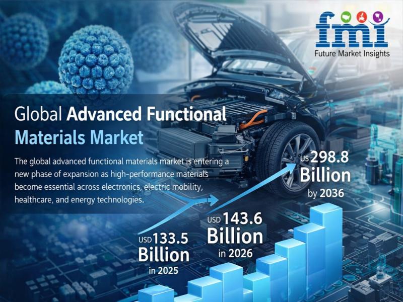 The global advanced functional materials market is entering a new phase of expansion as high-performance materials become essential across electronics, electric mobility, healthcare, and energy technologies. According to the latest analysis by Future Market Insights (FMI), the market was valued at USD 133.5 billion in 2025 and is expected to grow to USD 143.6 billion in 2026, eventually reaching USD 298.8 billion by 2036.