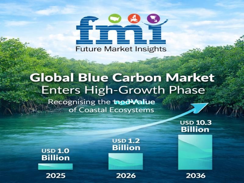 The global blue carbon market is entering a high-growth phase as corporations, governments, and conservation organizations increasingly recognize the climate value of coastal ecosystems. According to the latest analysis by Future Market Insights (FMI), the market was valued at USD 1.0 billion in 2025 and is projected to reach USD 1.2 billion in 2026, with long-term expansion expected to push the market to USD 10.3 billion by 2036.This rapid expansion represents a compound annual growth rate (CAGR) of 24.0% between 2026 and 2036, highlighting the rising demand for high-integrity carbon credits linked to coastal ecosystem conservation. The forecast reflects growing corporate interest in carbon removal credits that offer long-term durability, biodiversity co-benefits, and measurable environmental impact.
