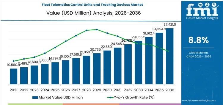 The global fleet telematics control units and tracking devices market is entering a phase of sustained expansion as transport operators increasingly rely on real-time vehicle intelligence to manage complex fleet operations. According to the latest market analysis, the sector is projected to grow from USD 16,100.0 million in 2026 to USD 37,421.0 million by 2036, registering a compound annual growth rate (CAGR) of 8.8% over the forecast period.