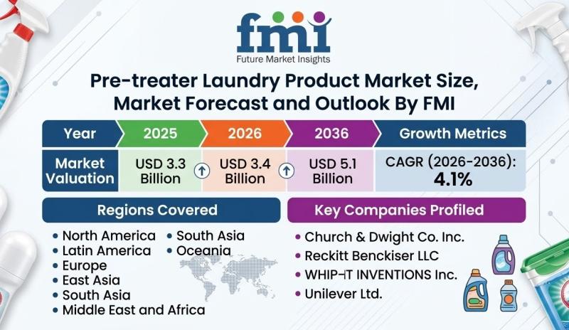 The global pre-treater laundry product market is entering a period of steady expansion as households and commercial laundry operators increasingly adopt targeted stain-removal solutions to preserve garment quality. According to the latest industry analysis by Future Market Insights (FMI), the market was valued at USD 3.3 billion in 2025 and is expected to reach USD 3.4 billion in 2026, ultimately expanding to USD 5.1 billion by 2036, registering a compound…