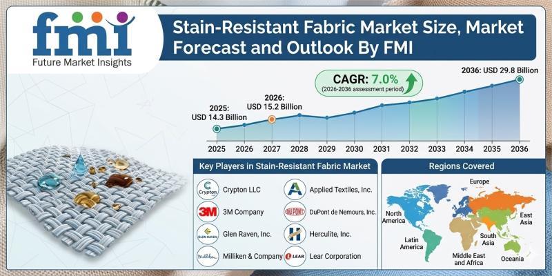 The global stain-resistant fabric market is entering a strong growth phase as property developers, furniture manufacturers, and institutional buyers prioritize durable and low-maintenance interior materials. According to the latest industry analysis by Future Market Insights, the market was valued at USD 14.3 billion in 2025 and is projected to reach USD 15.2 billion in 2026, expanding to USD 29.8 billion by 2036 at a CAGR of 7.0% during the 2026-2036…