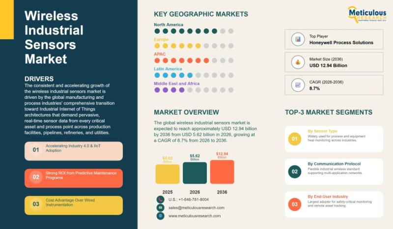 The global wireless industrial sensors market is experiencing steady expansion as industries worldwide transition toward data-driven operational models and connected production environments. The market was valued at USD 5.02 billion in 2025 and is projected to reach approximately USD 12.94 billion by 2036, increasing from USD 5.62 billion in 2026 at a compound annual growth rate (CAGR) of 8.7% during the forecast period. This growth reflects the rapid adoption of…