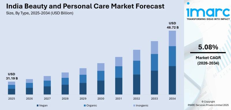 According to IMARC Group's report titled "India Beauty and Personal Care Market Size, Share, Trends and Forecast by Type, Product, Distribution Channel, and Region, 2026-2034", the report offers a comprehensive analysis of the industry, including market share, beauty and personal care market in india's trends, growth, and regional insights.