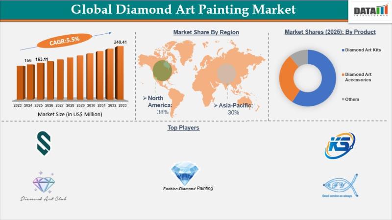 The global Diamond Art Painting market reached US$163.11 million in 2025 and is expected to reach US$248.41 million by 2033, expanding at a CAGR of 5.5% during the forecast period 2026-2033.