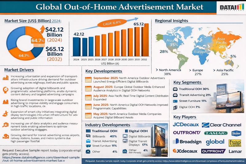 Out-of-Home Advertisement Market to Reach US$65.12 Billion by 2032 Growing at 6.8% CAGR Driven by Expansion of Digital Billboards