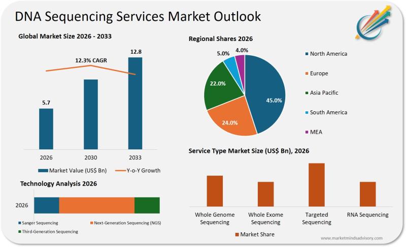 DNA Sequencing Services Market to Reach USD 12.8 Billion by 2033, Exhibiting 12. …