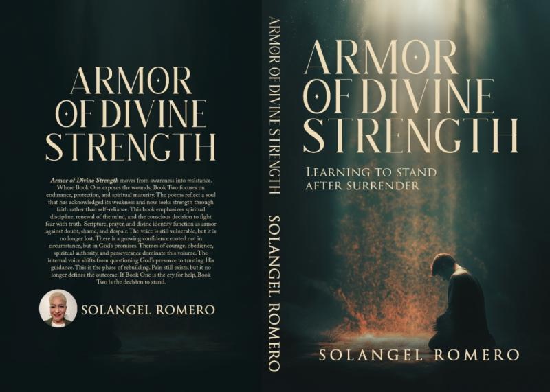 Solangel Romero announces the release of her deeply reflective poetry collection, Armor of Divine Strength , a powerful literary work centered on faith, resilience, and the enduring relationship between the human soul and God. Through an intimate collection of spiritually driven poems, Romero invites readers into moments of vulnerability, prayer, struggle, and renewal.Armor of Divine Strength is a devotional and contemplative book that explores themes of faith over fear, mental and emotional battles, grief, identity, aging, forgiveness, and divine grace. Written from lived experience and sincere spiritual reflection, the poems offer comfort to readers navigating uncertainty, loss, and personal transformation. Romero's voice is honest and unguarded, speaking directly to the reader with humility and conviction.