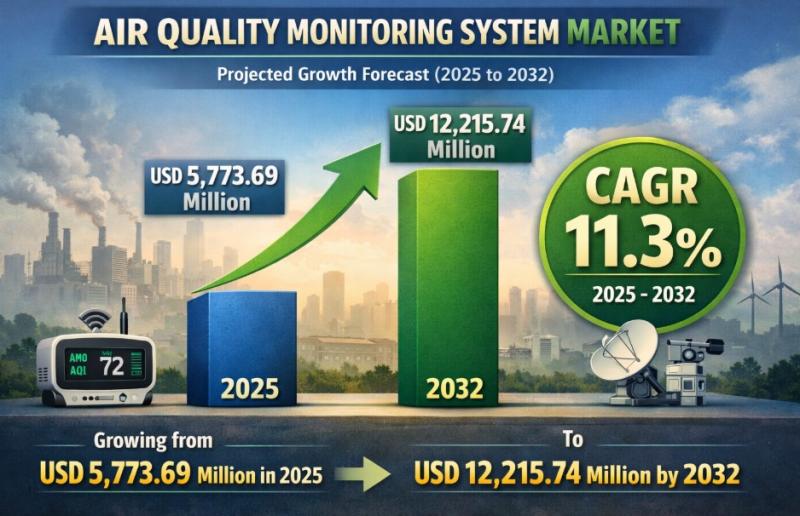 The Air Quality Monitoring System Market is experiencing significant global expansion as environmental concerns, industrial emissions, and urban pollution become increasingly critical challenges. According to industry estimates, the global air quality monitoring system market is projected to grow from USD 5,773.69 million in 2025 to approximately USD 12,215.74 million by 2032, registering a compound annual growth rate (CAGR) of 11.3% between 2025 and 2032.