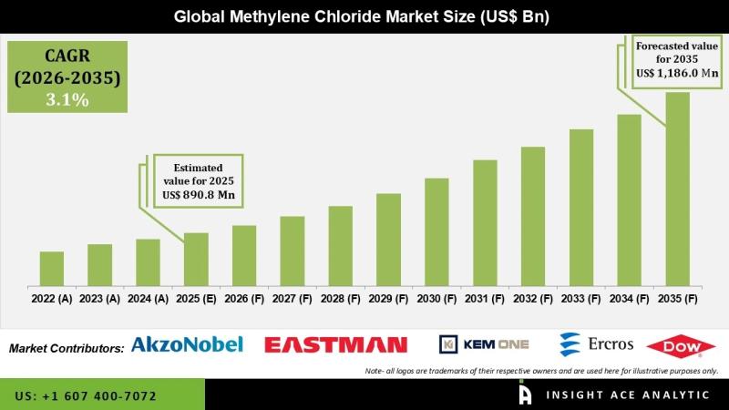 InsightAce Analytic Pvt. Ltd. announces the release of a market assessment report on the "Global Methylene Chloride Market Size, Share & Trends Analysis Report By Application (Metal Cleaning, Paint Remover, Solvent, Foam Manufacturing, Pharmaceuticals, Chemical Processing, and Others), End-user (Pharmaceuticals Industry, Food & Beverage Industry, Transportation Industry, Building & Construction Industry, Others), Distribution Channel (Direct and In Direct),-Market Outlook And Industry Analysis 2035"