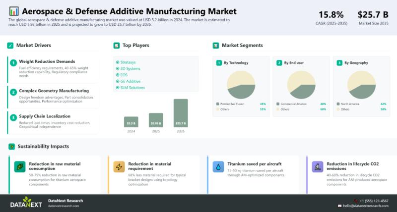 The aerospace and defense additive manufacturing market has been expanding rapidly, driven by innovations that are transforming how parts are designed and produced. In 2024, the market was valued at around USD 5.2 billion and is projected to reach USD 5.93 billion in 2025. By 2035, the market could grow to an estimated USD 25.7 billion, reflecting a CAGR of 15.8% over the next decade. This growth stems from industry…