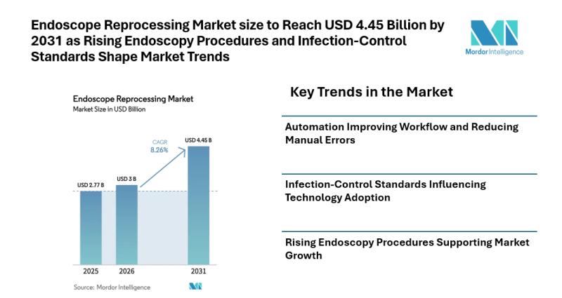 According to Mordor Intelligence, the endoscope reprocessing market size is projected to rise from USD 2.77 billion in 2025 to USD 3.0 billion in 2026, and is expected to reach USD 4.45 billion by 2031, reflecting steady endoscope reprocessing market growth across hospitals…
