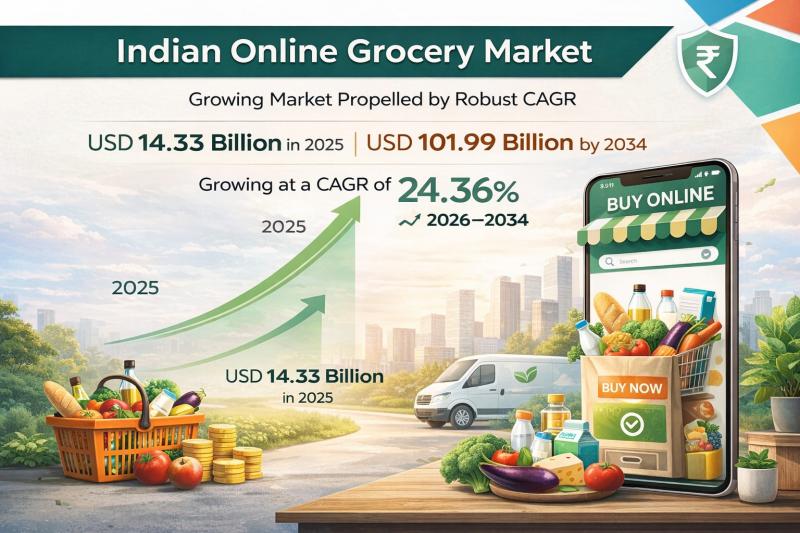 According to the latest research report titled "Indian Online Grocery Market Size, Share, Trends and Forecast by Product Type, Payment Method, Platform, and Region, 2026-2034," the report offers a comprehensive analysis of the industry, including market share, growth, trends, and regional insights.