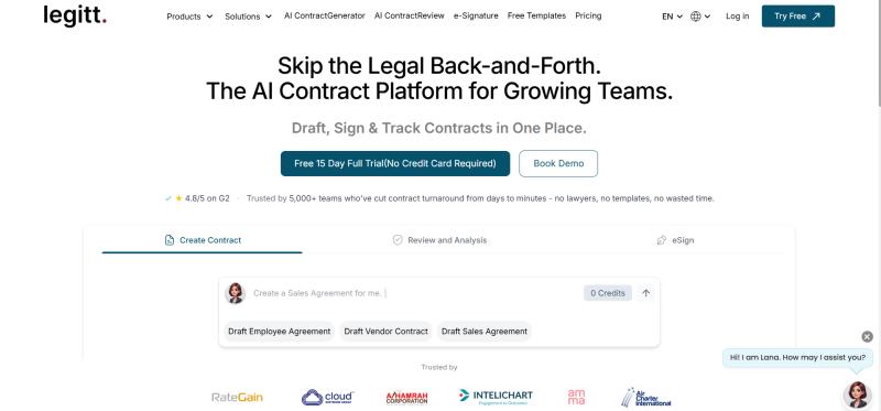 From solo founders to Fortune 500 procurement teams, Legitt AI serves a diverse global customer base spanning the USA, Canada, UAE, and Australia. Its consistent 4.8/5 rating on G2 speaks to the real-world impact the platform delivers - helping over 5,000 teams cut contract turnaround time by up to 60%.
